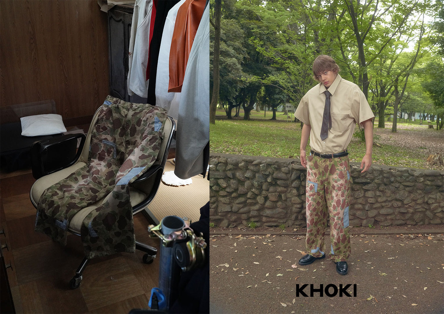 khoki Patchworked Camo Pants