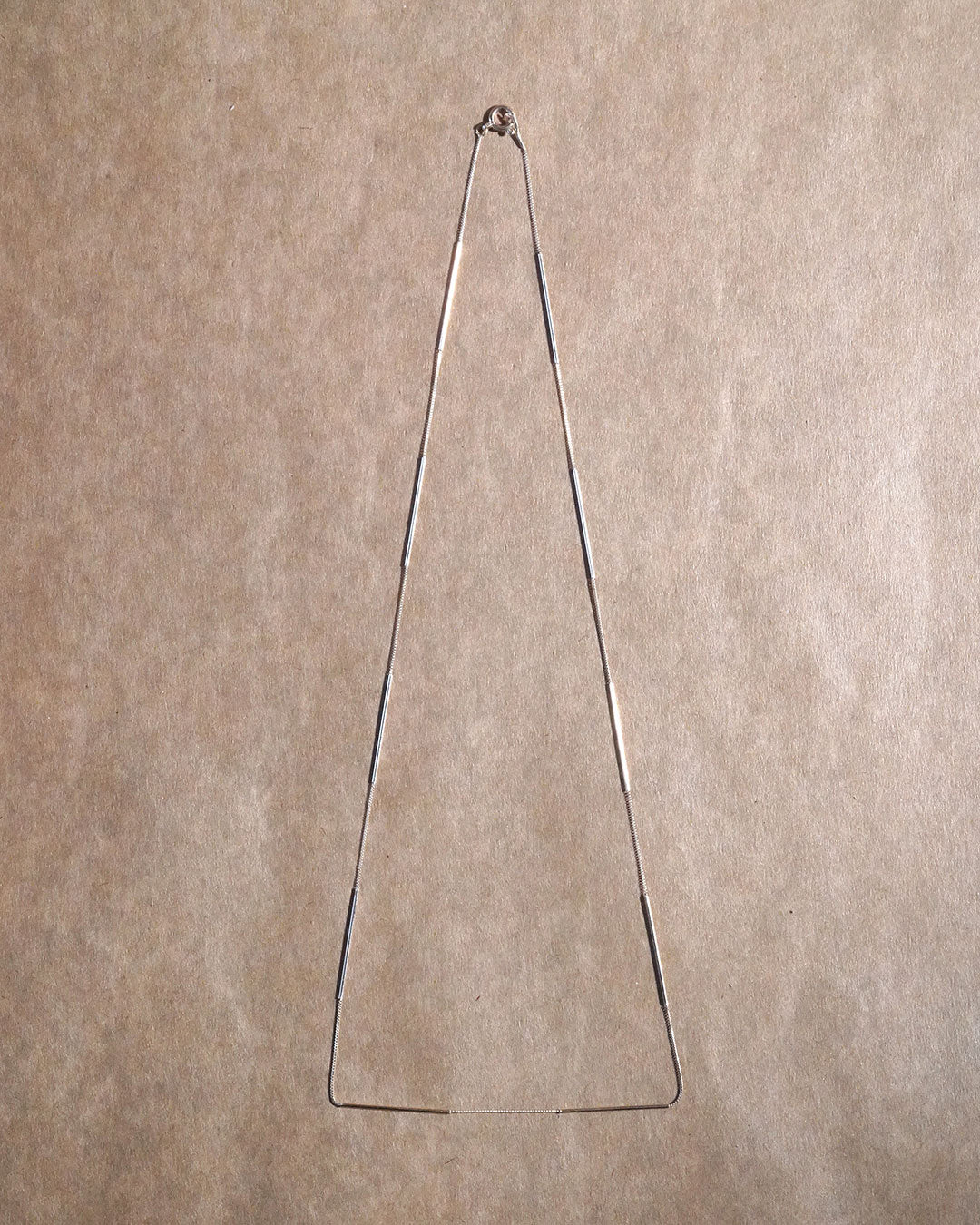 線とベネチェーン。硬くて柔らかい。相反する二つに一体感を与えてモードな一本に仕上がっております。